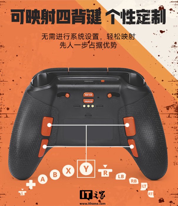 这款手柄还配有四个可映射背键,配有双震动马达和震动扳机,结果仅供参考,支持“一键静音”。