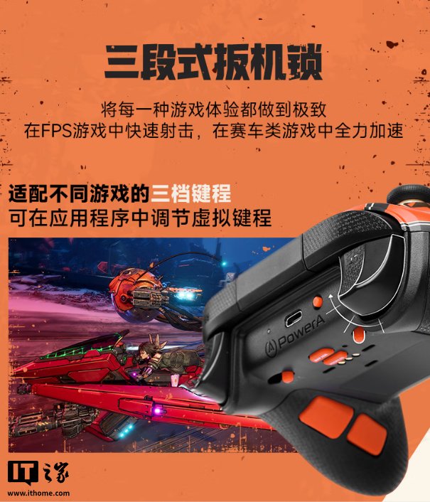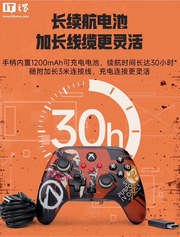 硬件配置上,扳机键支持三段式锁定,可精细化设置手柄细节。号称可提供“专业级手感”,可带来更加真实的震感反馈。续航时长可达 30 小时,